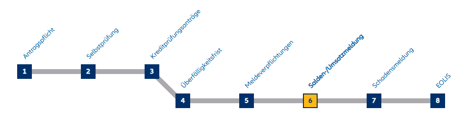 - Sofern in Ihrem Vertrag Beteiligungsunternehmen mitversichert sind, sind deren Salden bzw. Umsätze mitzumelden – je nach Vereinbarung in einer gemeinsamen oder in einer getrennten Liste.