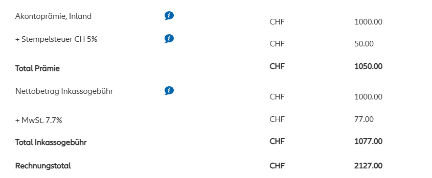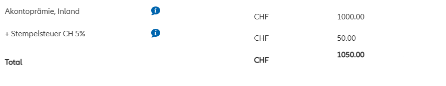 Akontoprämie, Inland = Abschlagzahlung auf die Mindestprämie gemäss Police