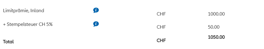 Limitprämie basierend auf der höchsten genehmigten Versicherungssumme pro Monat. Die detailierte Auflistung entnehmen Sie aus der angehängten Aufstellung der Einzelposten.