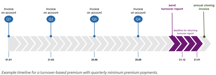 You have agreed a turnover-based premium if the agreed premium rate under point 1 of the Special Terms of your policy is endorsed with the phrase “Turnover with insured customers”.