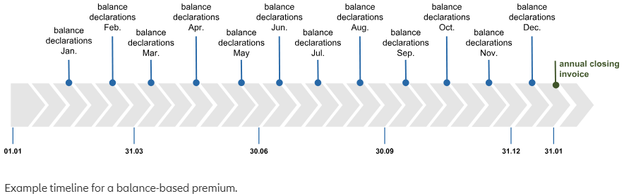 During the course of an insurance period, we will charge you the contractually agreed minimum premium in equal quarterly or six-monthly instalments.