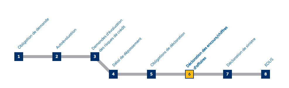 - N’oubliez pas de répondre à toutes les questions relatives à l’expérience que vous avez en matière de comportement de paiement de vos clients afin de ne pas compromettre le versement d’une éventuelle indemnité ultérieure.