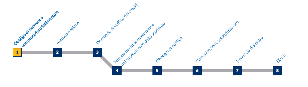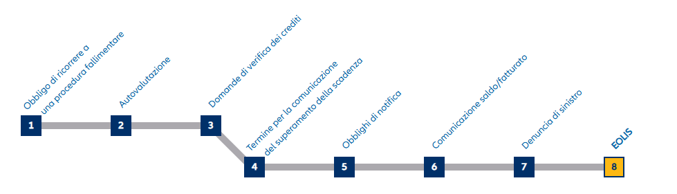 L’evento assicurato dell’insolvenza si verifica con l’apertura della procedura fallimentare. In caso di inadempimento protratto, l’evento assicurato si verifica con decorrenza del termine di mancato pagamento come da vostra polizza.