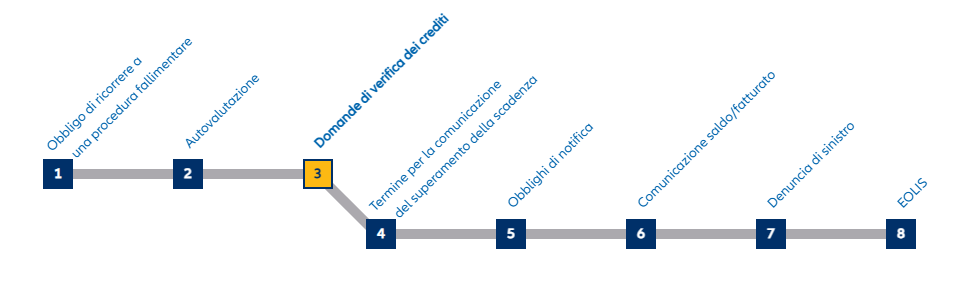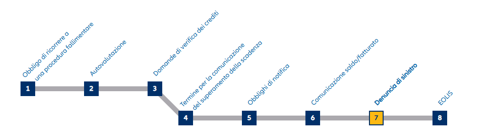 Nella vostra polizza sono indicati i termini per la denuncia del sinistro. Il modo più semplice e veloce per comunicare un sinistro è online tramite EOLIS. Tramite EOLIS è possibile anche allegare tutti i documenti necessari. In caso di insolvenza, vi preghiamo di comunicarci immediatamente i crediti insoluti.