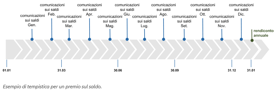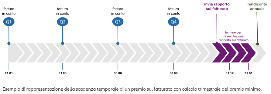 Se avete concordato con noi un premio sul fatturato e se in base alla vostra comunicazione alla fine dell’anno viene calcolato un premio inferiore al premio minimo previsto, dobbiamo addebitarvi un’imposta di bollo proporzionale.