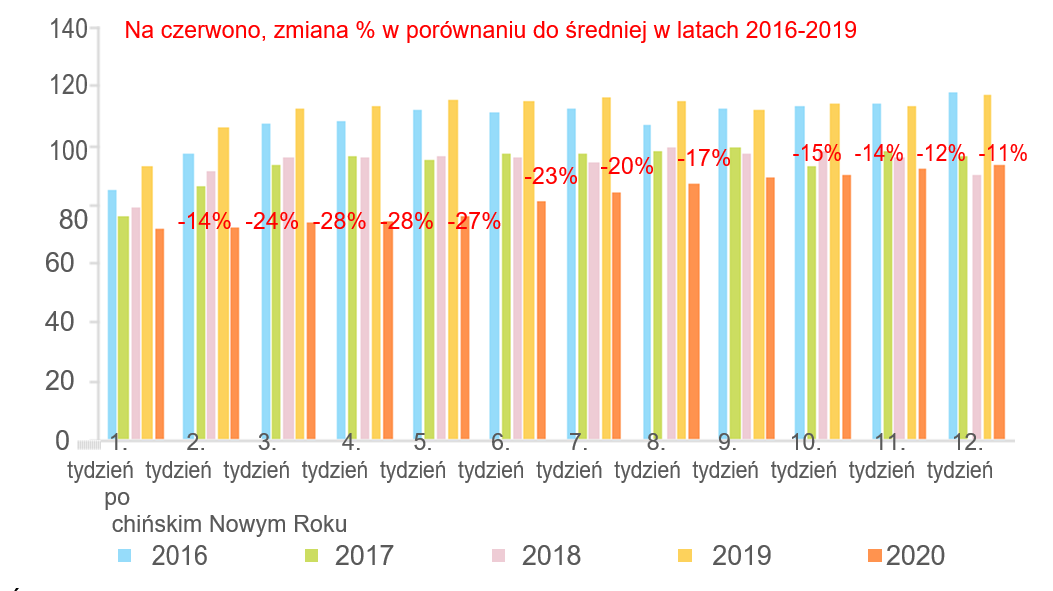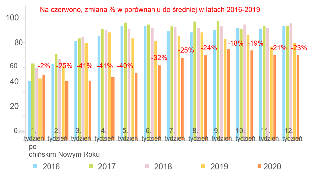 Obecnie w Allianz i Euler Hermes spodziewamy się, że pełne wznowienie chińskiej gospodarki nastąpi dopiero w czerwcu, opóźnione ze względu na presje zarówno popytu krajowego, jak i zewnętrznego. To dwa miesiące później niż nasza poprzednia ocena (zob. tutaj). Dane wysokiej częstotliwości (zob. Rysunki 2-4) sugerują, że produkcja nadal plasuje się 15-20% poniżej zwykłych poziomów i jest nawet niższa dla konsumpcji (np. wydatki na dobra trwałe prawdopodobnie na około 65% normalnych poziomów). Wydaje się, że ożywienie uległo zatrzymaniu w kwietniu, zapewne w wyniku niższego popytu zewnętrznego ze względu na ograniczenia wprowadzone u partnerów handlowych Chin. Dystans społeczny i cios w dochód do dyspozycji w I kw. powinny także ograniczyć konsumpcję prywatną w kraju. Chociaż dane chińskie generalnie zaskakują pozytywnie w marcu, istnieje ryzyko, że rozczarowanie może nastąpić w kilku nadchodzących miesiącach.