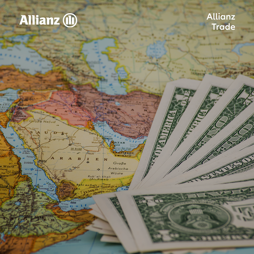 Em primeiro lugar, com um mês de conflito, os especialistas da Allianz Trade avaliaram os mais recentes cenários econômicos em razão do conflito Israel-Hamas. A partir de hoje, as tensões parecem destinadas a evoluir para um conflito prolongado mas contido (75% de probabilidade). O impacto nos preços mundiais das matérias-primas e na inflação permanece mais estável, uma vez que as condições iniciais já eram muito restritivas. No geral, esperamos um ligeiro efeito estagflacionário na economia global, com pouco impacto nos mercados de capitais. Já em um possível cenário negativo de grave escalada para um conflito regional com intervenção direta do Irã e dos EUA, os países da OPEP+ poderiam decidir sobre um corte drástico na produção de petróleo, ecoando o embargo petrolífero de 1973-1974, e os receios de uma perturbação no comércio no Estreito de Ormuz certamente aumentariam. Isso levaria a preços recordes do petróleo e causaria uma recessão para a economia global. Os mercados de capitais também seriam gravemente afetados: os índices de ações provavelmente cairiam -7% nos EUA e -9% na Zona do Euro, juntamente com o aumento dos spreads de crédito.