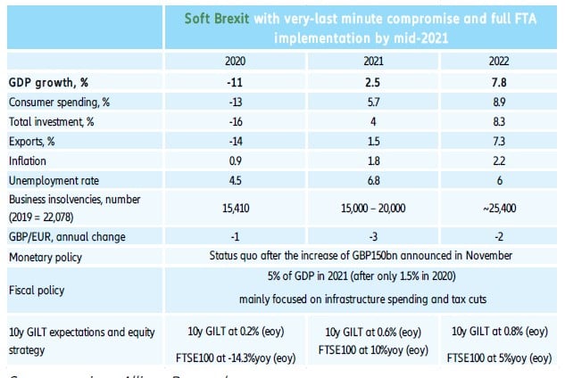 Primeiro: demanda interna baixa e volátil por causa das restrições sanitárias renovadas. No curto prazo, o “hard lockdown”, agravará a contração do consumo privado e do investimento. Isso deve manter a disrupção do comércio baixa, pelo menos até o segundo tri de 2021, dando tempo para o governo buscar investimentos em infraestrutura, com o objetivo de reduzir o tempo gasto no monitoramento da fronteira. No entanto, para os exportadores britânicos, um BREXIT em tempos de Covid-19 pode ser ainda mais difícil. Prevemos que os exportadores do Reino Unido perderão entre 13,5 a 27,3 bi de euros ao longo do ano (contra 10 bi de euros dos exportadores da UE) devido à fraca demanda, maior burocracia e pouca competitividade da libra esterlina (-3% em 2021). Isso se traduziria em 0,6% a 1,1% de perda anual no PIB. Os cinco setores mais afetados seriam metais, maquinário, equipamentos de transporte, químico e têxtil.Segundo: a "regra de origem" provavelmente exigirá mudanças na cadeia de suprimentos dado alta dependência dos insumos estrangeiros.