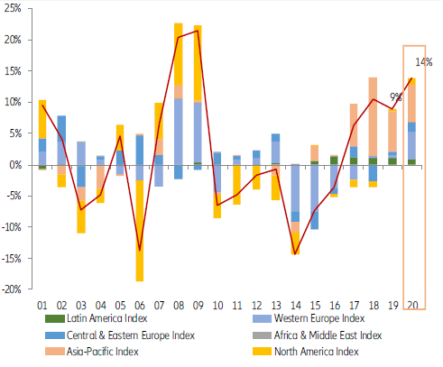 Dôsledky šírenia nákazy COVID-19 spôsobia trojfázový šok vo svetovej ekonomike: V prvom rade je to recesia v obchode s tovarmi a službami, ktorá podľa analýzy spoločnosti Allianz Trade, klesne v roku 2020 o -3,7%. Ďalším šokom je index akcií MSCI World, ktorý stratil za 90 dní až 30% svojej hodnoty, čo je najostrejšia korekcia od krízy na trhu hypoték v rokoch 2008 - 09. Globálna menová politika tak signalizuje oveľa prísnejšie finančné podmienky. Do tretice, šok z pandémie povedie po celom svete k najzávažnejšiej recesii storočia. V čase zverejnenia analýzy sú 3/4 globálneho HDP nejakým spôsobom obmedzené, čo vytvára sekundárne efekty na investičné správanie, keďže šok je exponenciálny a kolektívny.
