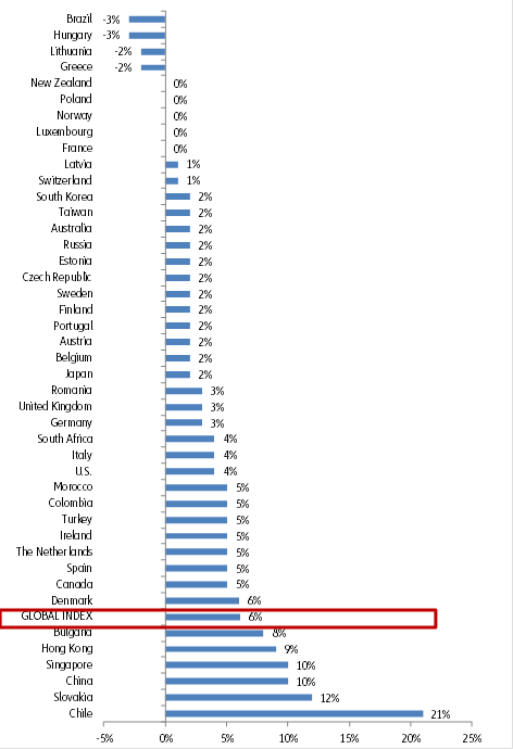 Artışın, tüm bölgelerde ve hem gelişmekte olan hem de gelişmiş ülkelerin çoğuna olduğu görüldüğünden geniş tabanlı olduğu söylenebilir. Ülke bazında elimizdeki son yıllık verilere dayanarak 2019 yılında örneklemimizdeki ülkelerden 29’unda (yani %66’sında) 2018 yılına göre daha fazla iflas beklediğimizi söyleyebiliriz.