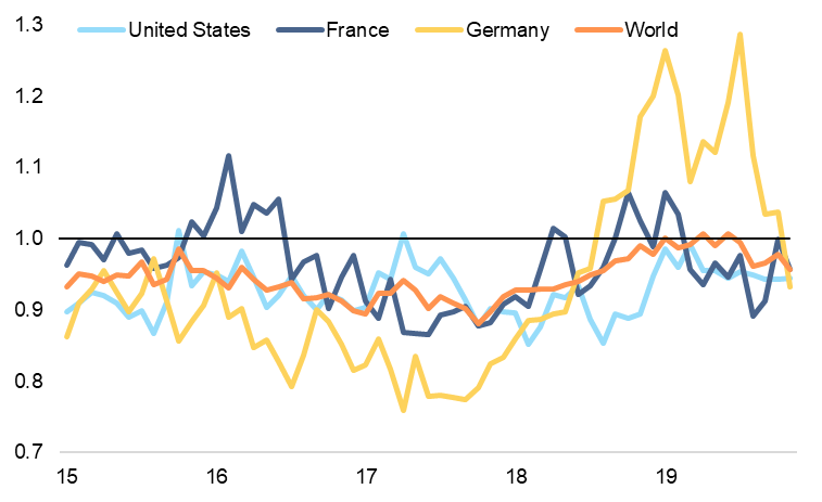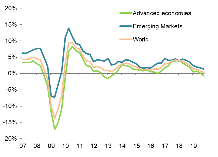 Öncelikle, Koronavirüs salgını nedeniyle imalat sanayii sektörünün 2020 yılının ilk yarısında resesyonda kalmaya devam etmesini bekliyoruz. Elektronik ve bilgisayar ürünleri en çok risk taşıyan sektörler. Salgın nedeniyle Çin’de iş faaliyetlerinin sekteye uğraması; tekstil, makine ve ulaşım ekipmanı ve emtia sektörlerinde stokları uzun vadeli seviyelerin üzerine taşıyabilir (salgın, birçok sektörü, tedarik zinciri aksaklıkları ve söz konusu sektörlere yönelik daha düşük küresel talep riskleriyle karşı karşıya bıraktı. Diğer yandan, stok seviyesi uzun dönemli ortalamanın altında olan sektörlerde de (elektronik ürünler, bilgisayarlar) ürün kıtlığı yaşanma riski var. 2019 yılında şirketlerin olağandışı yüksek seviyede stoklama yapması imalat sanayii üretimini, özellikle de gelişmiş ülkelerde, resesyona itmişti. Son aylarda stoklarda ciddi bir erime olmadı. Buna ek olarak; küresel talebin daha düşük olması ve belirsizliklerin tırmanması önümüzdeki aylarda stokların yeniden artmasına neden olacaktır. Bu nedenle, küresel olarak imalat sanayii sektörünün 2020 yılının ilk yarısında (sığ bir) resesyonda kalmasını bekliyoruz.