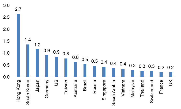 İkinci olarak, üretim ve ticaretin sekteye uğraması nedeniyle Çin’e yapılan mal ve hizmet ihracatında haftalık 26 milyar dolara yakın kayıp yaşanabilir. 2020 yılı küresel ticaret büyümesi tahminimizi aşağı yönde 0,5 yüzde puan revize ederek +%1,3’e indirdik. Hong Kong, ABD, Japonya, Güney Kore ve Almanya bu açıdan en çok zarar görebilecek ülkeler. Haftalık 26 milyar dolarlık ihracat kaybı, 2020 yılında küresel olarak mal ithalatına yönelik gümrük vergilerinde 1 yüzde puanlık artış yaşanmasına benzer -karşılaştırmak gerekirse 2019 yılında ABD ve Çin arasında yaşanan ticari ihtilafın yarattığı zarar gümrük vergilerinde 0,7 yüzde puanlık bir artışa eşitti. Mal ticareti bakımından durumdan en çok etkilenecek ülkeler; Hong Kong, Güney Kore, Japonya, Almanya ve ABD olacaktır. Mal ihracatına yönelik kayıp haftada 18 milyar dolara ulaşabilir. Hizmet ticaretine bakılacak olursa, Çin, dünya seyahat harcamalarının %20’sini temsil ediyor (ABD %11’ini ve Avrupa yaklaşık %30’unu). Bu da, dünya için haftada 6 milyar dolarlık potansiyel bir kayıp anlamına geliyor. Hizmet kanadındaki kayıplardan en çok etkilenecek ülkeler; Hong Kong, ABD, Japonya ve Güney Kore olacaktır. Bunlara ek olarak ulaştırma hizmetlerine yönelik kayıplar da (Çin’den yapılacak ithalat azalacağı için bu hizmetlerin kullanımında da düşüş olacağından) haftada 2 milyar dolara ulaşabilir. Bu akut ticari şok en az 9 Şubat’a kadar devam edecektir.